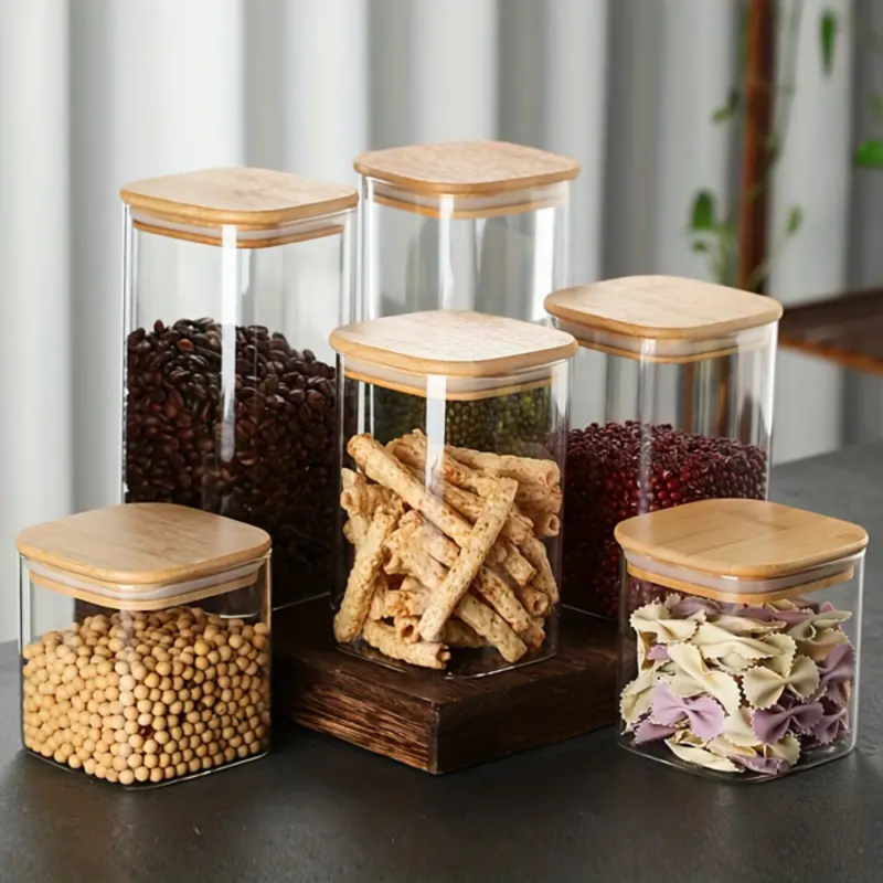 Frasco Cuadrado de Vidrio Borosilicato C/Tapa de Bambú 1400 ml