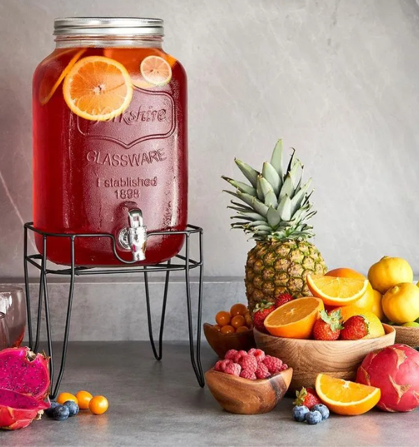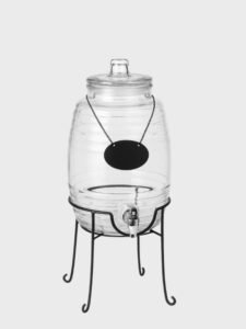 Dispensador de Vidrio Tipo Barril 10 Litros | Base de Metal y Pizarra Decorativa