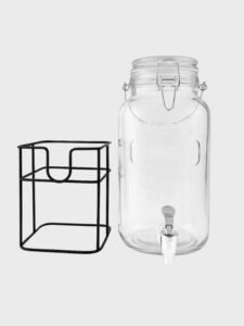 Dispensador de Vidrio Hermético 3.8 Litros con Base de Metal Negra