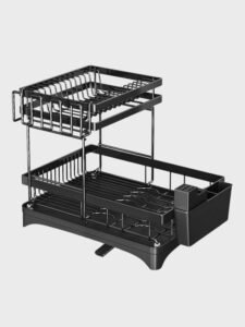 Escurridor de Platos de 2 Niveles con Drenaje y Soporte de Cubiertos