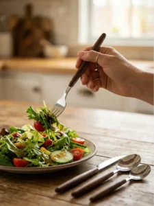 Set de Cubiertos Yadalekf Mango de Madera 16 Piezas | Acero Inoxidable