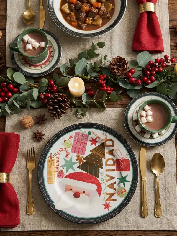 Juego de Loza Navideño 16 Pz | Jengibre y Copos