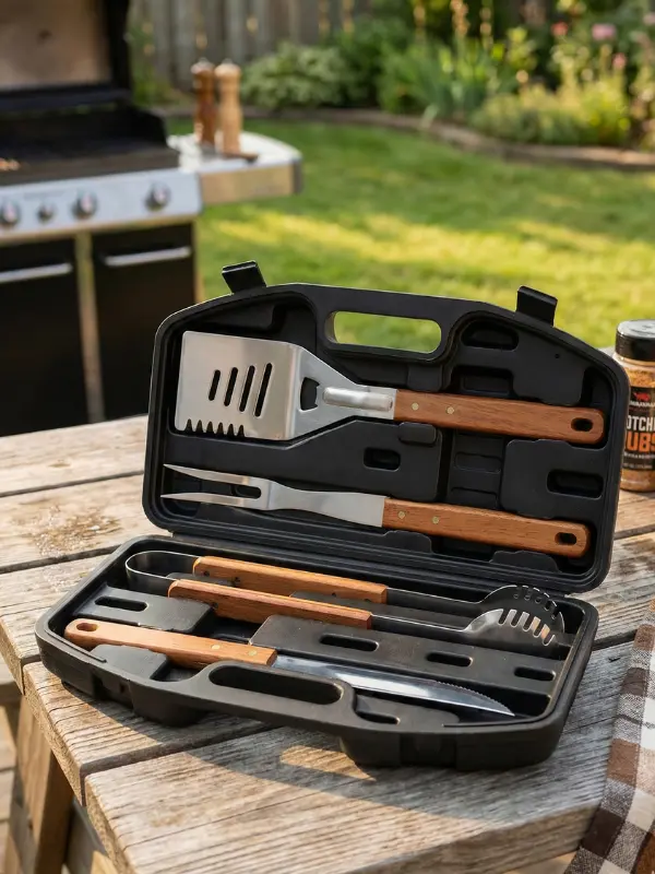 Set Utensilios Parrilla BBQ 4 Pz | Acero Inox | Facusa