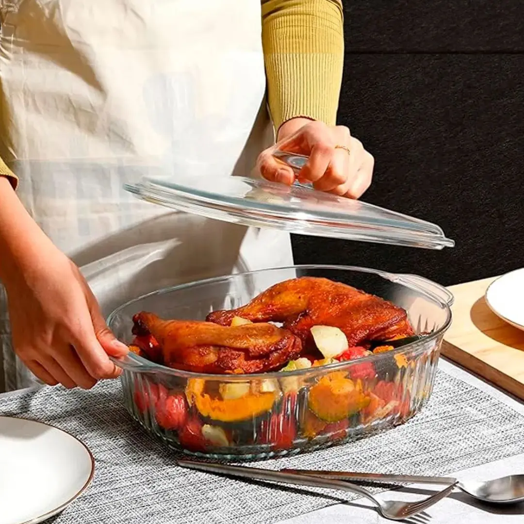 Cacerola Ovalada de Vidrio Borosilicato 2.8L | Apta Horno y Mesa – Resistente
