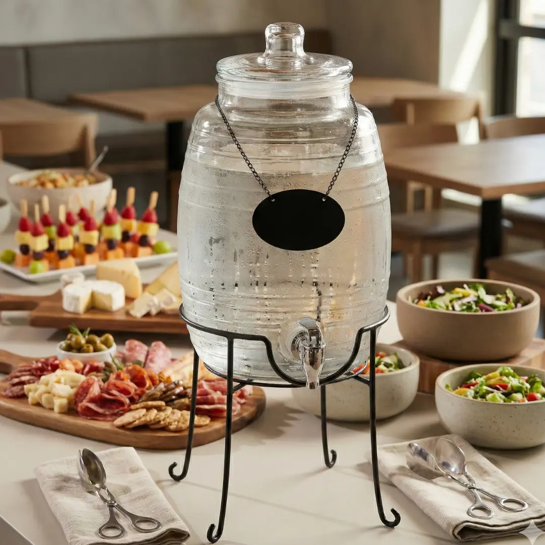 Si tienes un negocio de catering, un restaurante o simplemente una familia numerosa, el Dispensador Tipo Barril de 10 Litros es tu mejor inversión. Su diseño imponente no solo decora, sino que soluciona el problema de atender a mucha gente: llénalo una vez y olvídate de reponer bebida por horas.