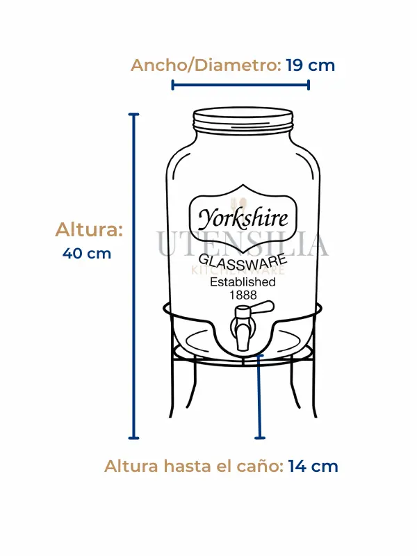 El Dispensador Yorkshire de 5 Litros es la combinación perfecta entre funcionalidad y decoración vintage. Su tamaño compacto lo hace ideal para encimeras de cocina, oficinas o mesas de postres, ofreciendo la cantidad justa de bebida sin ocupar demasiado espacio.