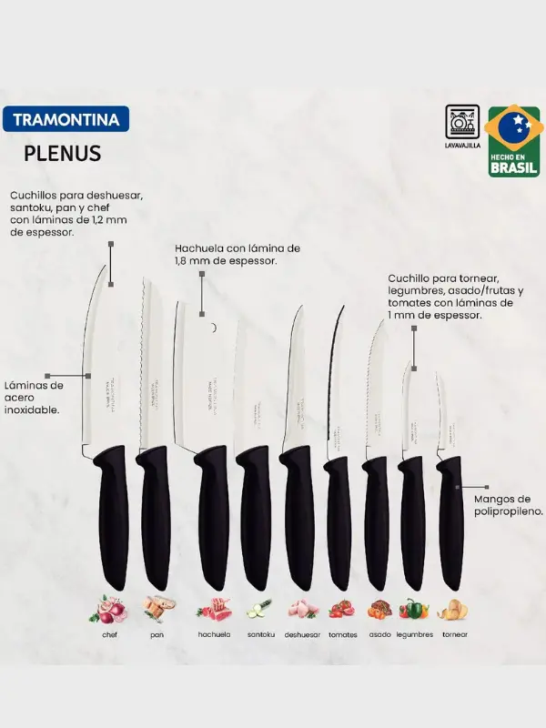🔪 Juego de Cuchillos Tramontina Plenus 9 Piezas Negro: Solución Completa y Clásica